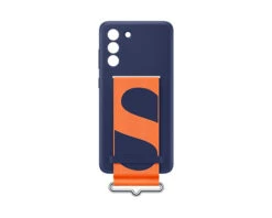 Cover Samsung EF-GG990TNEGWW Custodia Silicone Con Cinghia Galaxy S21 FE 5G SM-G990B Navy Arancio