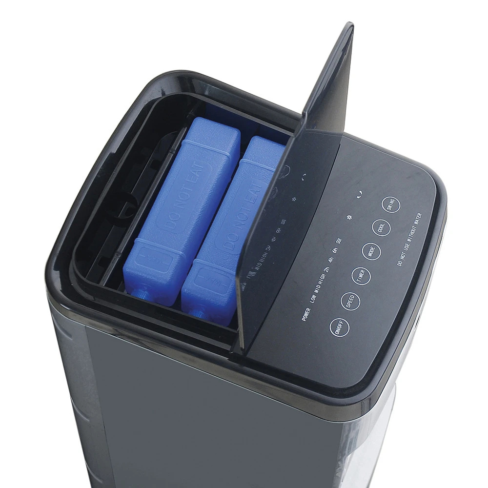 Raffresca e umidifica. Telecomando. 3 velocità. Oscillazione automatica delle alette verticali. Timer 12 ore. Filtro anti polvere. Base con ruote. I raffrescatori evaporativi sono versatili, leggeri e dal basso consumo energetico. Possono essere usati ovunque e, grazie alle alette oscillanti, possono distribuire uniformemente aria fresca nella stanza. Funzionano con acqua fresca e ghiaccio.