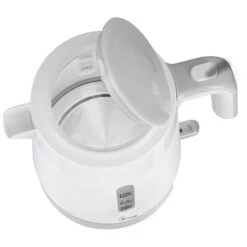 Bollitore elettrico compatto. Capacità 1L – 4 tazze. Il bollitore si spegne automaticamente quando l’acqua raggiunge l’ebollizione, quando viene sollevato dalla base o quando l’acqua non è sufficiente. Filtro anticalcare, removibile e lavabile. Spia luminosa di funzionamento. Il coperchio si apre agevolmente con la semplice pressione del pulsante, evitando il contatto con il vapore. L’ampia apertura semplifica la pulizia. Il beccuccio versa l’acqua senza gocciolare e ha un bordo liscio. Base girevole a 360° con avvolgicavo.