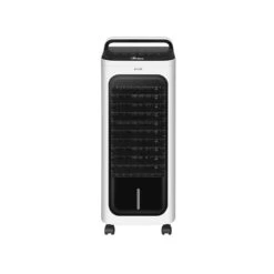 Raffrescatore d’aria multifunzione: aria fresca d’estate e calda d’inverno. 3 velocità di ventilazione. Grazie alla tecnologia evaporativa, raffresca con un basso consumo energetico mediante aria che passa attraverso acqua fresca e ghiaccio. 2 livelli di riscaldamento. L’oscillazione automatica delle alette verticali distribuiscono uniformemente aria fresca nell’ambiente. Inclinazione delle alette orizzontali per direzionare l’aria. Pannello comandi touch e display LED. Telecomando. Filtro anti polvere. Maniglia e ruote per il trasporto.