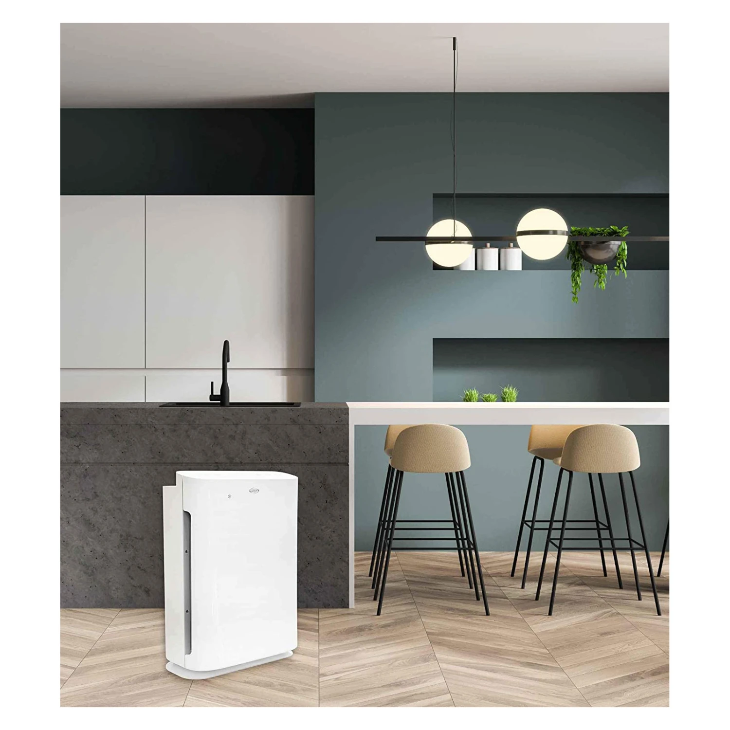 Il primo purificatore di casa Argo dotato di lampada UVC integrata, l’unica in grado di annientare i virus, grazie all’effetto sterilizzatore dei raggi UVC. Il filtro multi-strato composto da prefiltro, filtro HEPA13 e filtro a carboni attivi assicura un’efficace purificazione da polveri, allergeni e batteri, mentre lo Ionizzatore integrato concorre a rendere l’aria indoor ancora più fresca e leggera. Design essenziale e raffinato, realizzato con materiali di alta qualità : irrinunciabile per migliorare il benessere abitativo.