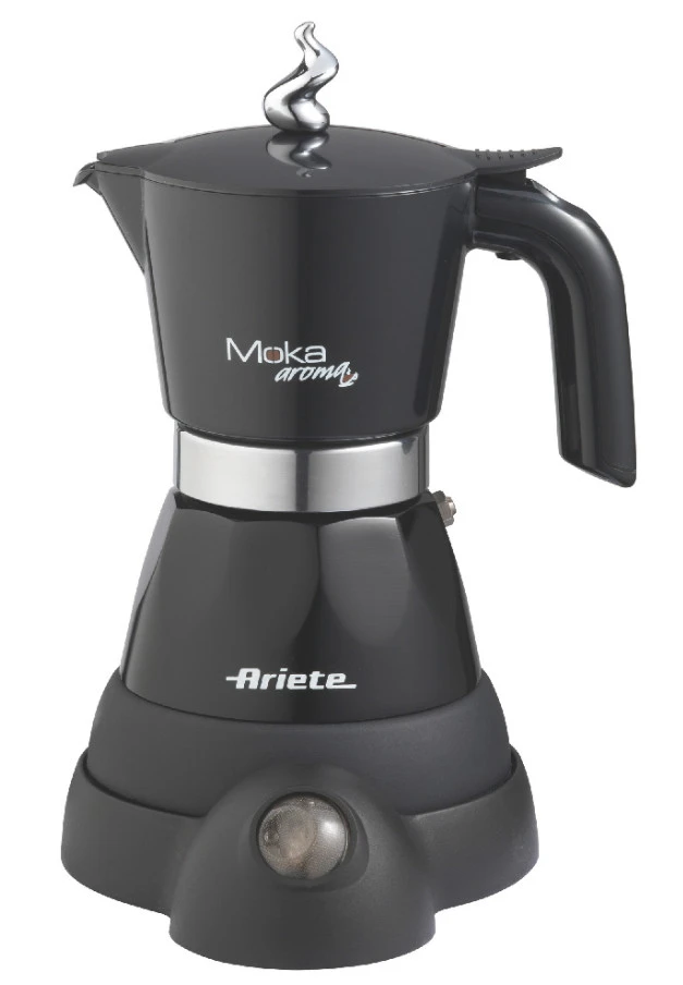 Ariete Moka Aroma Elettrica Nera. Tipo di prodotto: Boccale per moca elettrico, Tipologia di caffè utilizzato: Caffè macinato, Vaschetta per caffè preparato: Brocca, Capacità in tazze: 4 tazze. Potenza: 400 W. Colore del prodotto: Nero