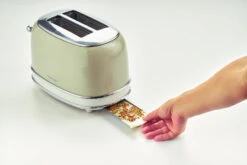 Toaster vintage a 2 fette con pinze per tostare semplici fette o sandwich farciti, con espulsione automatica, cassetto raccoglibriciole estraibile, 6 livelli di doratura, pareti fredde e funzione scongelamento, riscaldamento e cottura. Lo stile che non può mancare nella tua cucina!
