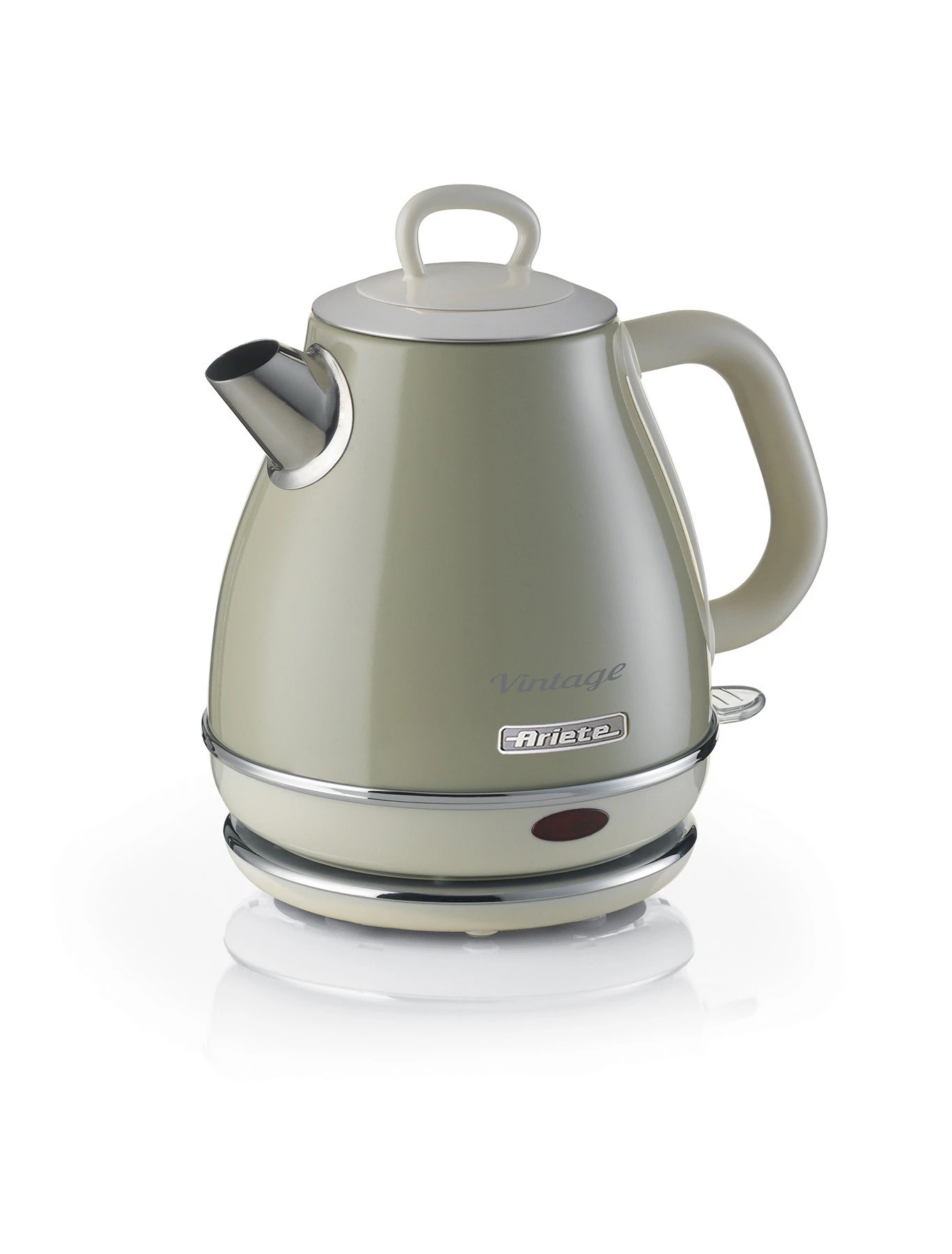 Le forme eleganti e moderne, ispirate all’intramontabile stile Vintage, si fondono con la modernità delle soluzioni tecniche di Ariete dando vita ad una gamma completa di piccoli elettrodomestici. Inizialmente dedicati alla colazione, i prodotti della linea Vintage oggi abbracciano più ambiti all’interno della preparazione degli alimenti. La gamma si arricchisce di anno in anno per rispondere alle crescenti esigenze dei consumatori. Il nuovo bollitore dalla capacità di un litro, il modello 2868 conferma le caratteristiche vincenti della gamma: le linee marcatamente retrò, il corpo in metallo e le tre colorazioni: verde, azzurro, beige. Grazie alle pareti fredde che permettono comodamente di trasportarlo e posizionarlo su qualsiasi superficie al di fuori della base, al manico ergonomico e al sistema di autospegnimento, questo accessorio diventa un compagno sicuro e facile da utilizzare, ideale per i vostri momenti di relax, in solitudine o in compagnia.