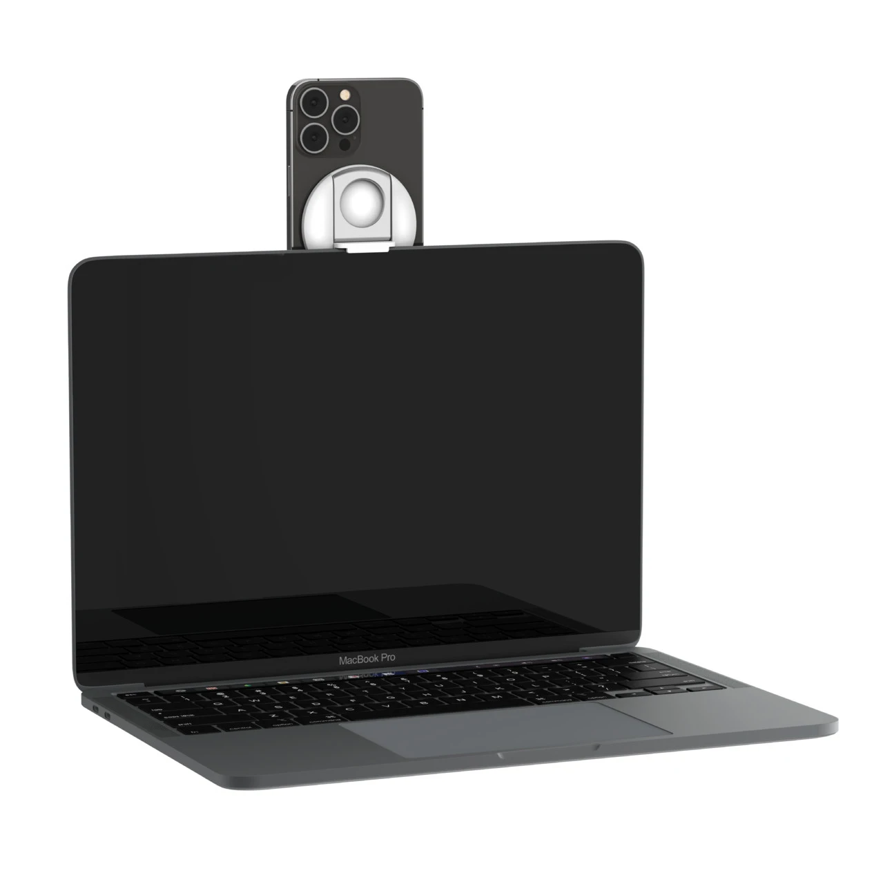 La Fotocamera Continuity disponibile con un clic Sfrutta al massimo la fotocamera del tuo iPhone con questo raffinato supporto per iPhone compatibile con MagSafe per potenziare le videoconferenze, le videochiamate su FaceTime e molto altro ancora. Ti basta agganciare il tuo iPhone al notebook Mac per utilizzare la funzione Fotocamera con Continuity dell’ultima versione di macOS per migliorare la qualità delle videochiamate senza bisogno di apparecchiature o strumenti aggiuntivi. È ideale per essere usato insieme a un notebook Mac e a un iPhone. Compatibile con MagSafe Ti basta posizionare il tuo iPhone con MagSafe (iPhone 12 e modelli successivi) sul potente supporto magnetico e potrai subito chattare e fare streaming a mani libere. È il modo più facile per abbinare il tuo iPhone al Mac per migliorare le tue videochiamate. Ruotalo per visualizzare in modalità ritratto o paesaggio Con il supporto magnetico per iPhone puoi configurare le tue videochiamate sulla modalità ritratto o paesaggio. Ruota l’iPhone per fare streaming o registra i tuoi video in qualsiasi orientamento, a mani libere. Anello di aggancio e supporto estraibile Usalo come un raffinato anello di aggancio o come un supporto per la scrivania. Le finiture di alta qualità e il design audace lo rendono un accessorio ideale per il tuo ecosistema con Mac e iPhone.