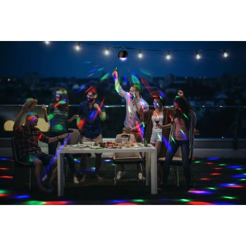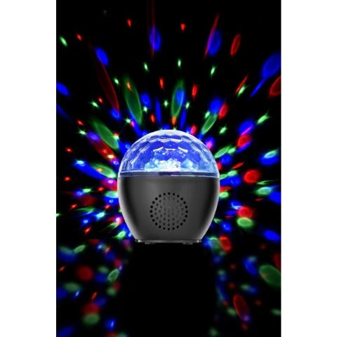 Il DISCO SPEAKER è lo speaker Bluetooth con proiettore di luci integrato, ideale per animare con la tua musica preferita una cena o una festa con gli amici. Pratico, leggero e trasportabile, può essere appeso per proiettare giochi di luce grazie al comodo gancio. Con il telecomando incluso si possono gestire i brani, il volume e le diverse opzioni di luci, che cambiano colore a ritmo di musica. Brani e volume sono gestibili anche dallo smartphone o dal tablet. Perfetto come idea regalo.