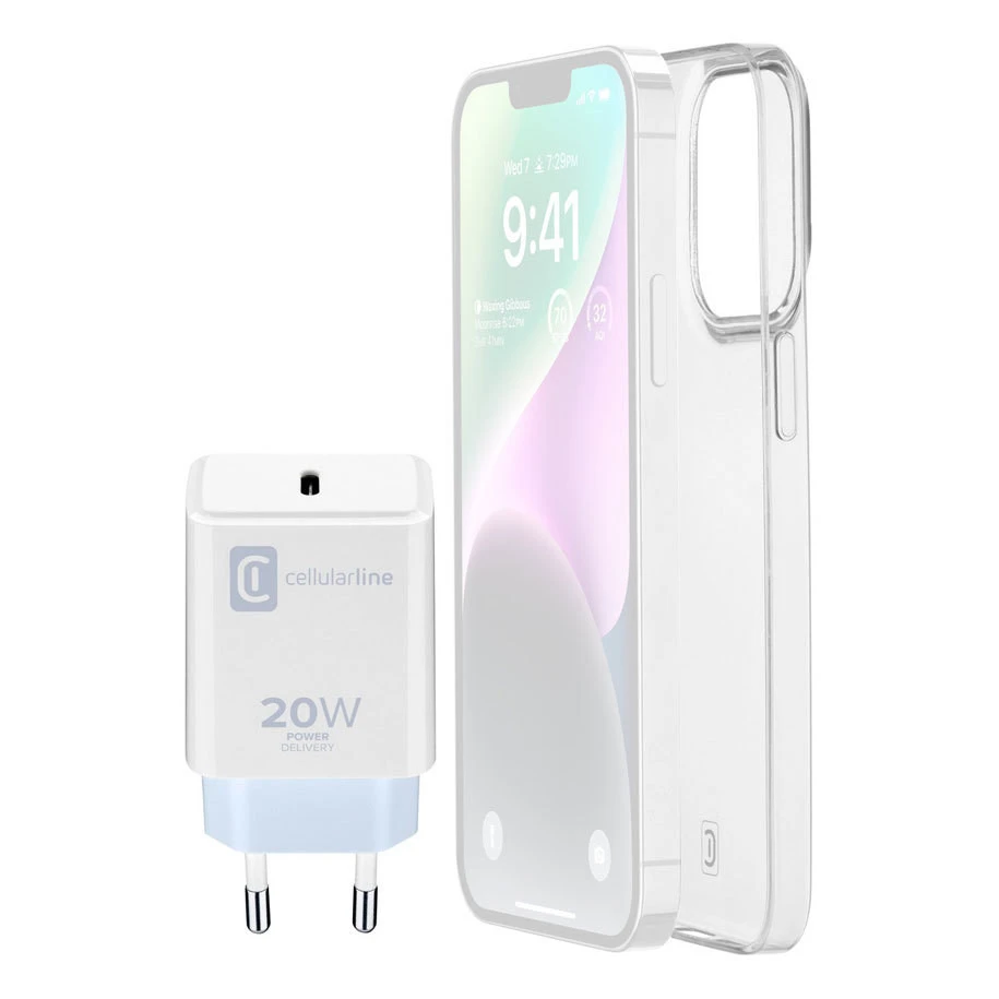 Cellularline Starter Kit Caricabatterie E Custodia Bianco Trasparente Per Iphone 14 Plus A2886