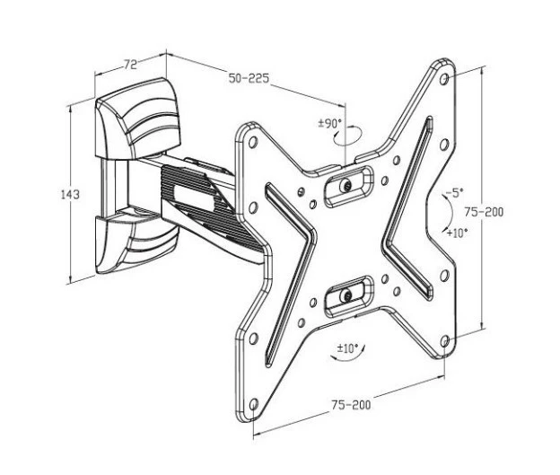 – Standard vesa: 75*75 – 100*100 – 100*200 – 200*200 mm – Portata massima Kg 25 – Distanza dal muro: mm 50/225