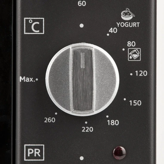 Grancotto 37 è un forno elettrico ventilato dotato di ampio vano cottura da 37L, ideale per contenere piatti fino a 38 cm di diametro e cuocere più pietanze contemporaneamente. Le pareti interne sono smaltate, pulirle è davvero semplice! Il termostato è regolabile da 40 a 280°C ed è possibile scegliere tra ben cinque modalità di cottura che, unite alla ventilazione del calore, donano alle tue preparazioni doratura e croccantezza uniformi. Grazie al timer da 90 minuti con segnale acustico e alla lampada interna puoi tenere sempre sotto controllo la cottura. Nella confezione sono inclusi una griglia, una leccarda rettangolare e una leccarda tonda da 37cm di diametro, ideale per pizze, torte salate o dolci.