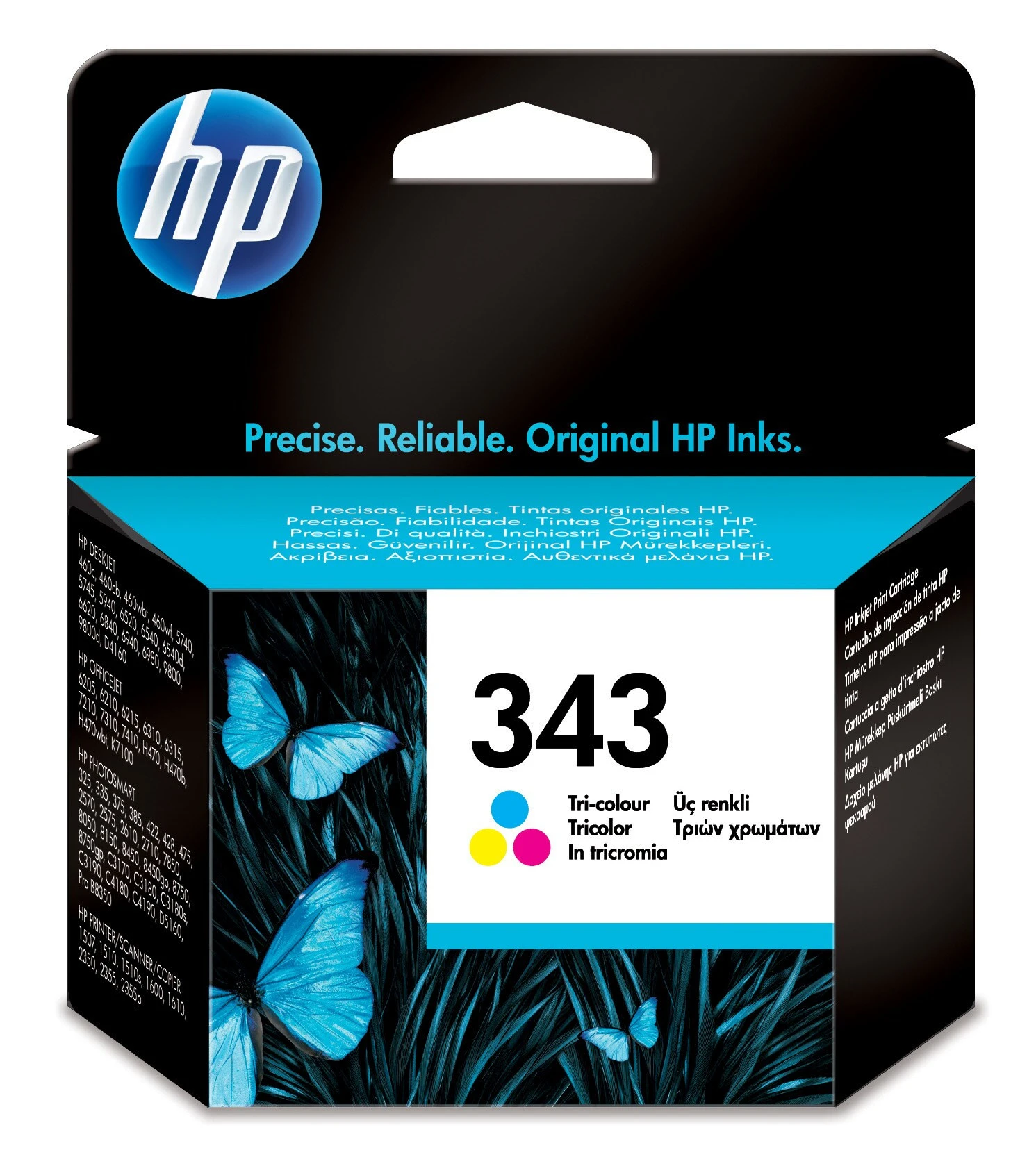 HP Cartuccia originale inchiostro tricromia 343. Tipo di cartuccia: Resa standard, Tipo di inchiostro a colori: Inchiostro colorato, Resa in pagine dell’inchiostro a colori: 330 pagine, Quantità per pacco: 1 pz
