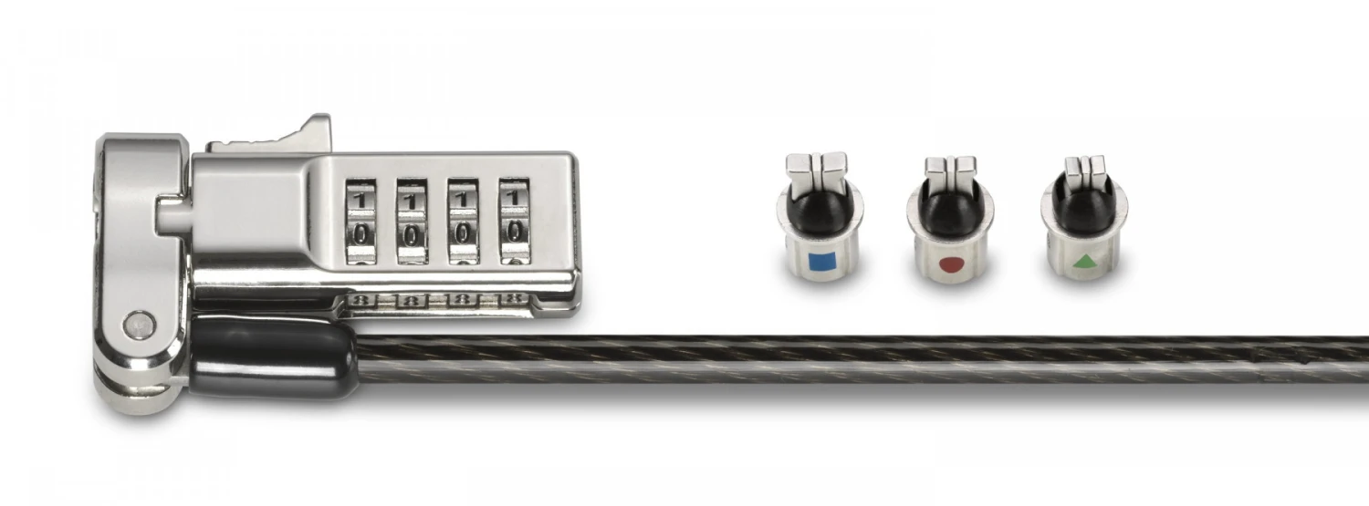Ora esiste un lucchetto con cavo con combinazione che protegge tutto. Il lucchetto per laptop universale 3 in 1 con combinazione è adatto allo slot di sicurezza di tutti i laptop: standard, nano e wedge, in modo che le soluzioni di bloccaggio siano a prova di futuro. Una combinazione a 4 numeri reimpostabile con 10.000 combinazioni possibili e un cavo in acciaio al carbonio offrono sicurezza robusta contro i tentativi di furto. Tra le altre caratteristiche si trovano Register & Retrieve™ per un recupero rapido, sicuro e facile della combinazione e una garanzia di cinque anni supportata da Kensington, inventore e leader mondiale nei lucchetti di sicurezza per laptop. Tutti i lucchetti Kensington sono verificati e testati rispetto a robustezza, resistenza fisica e resilienza meccanica.