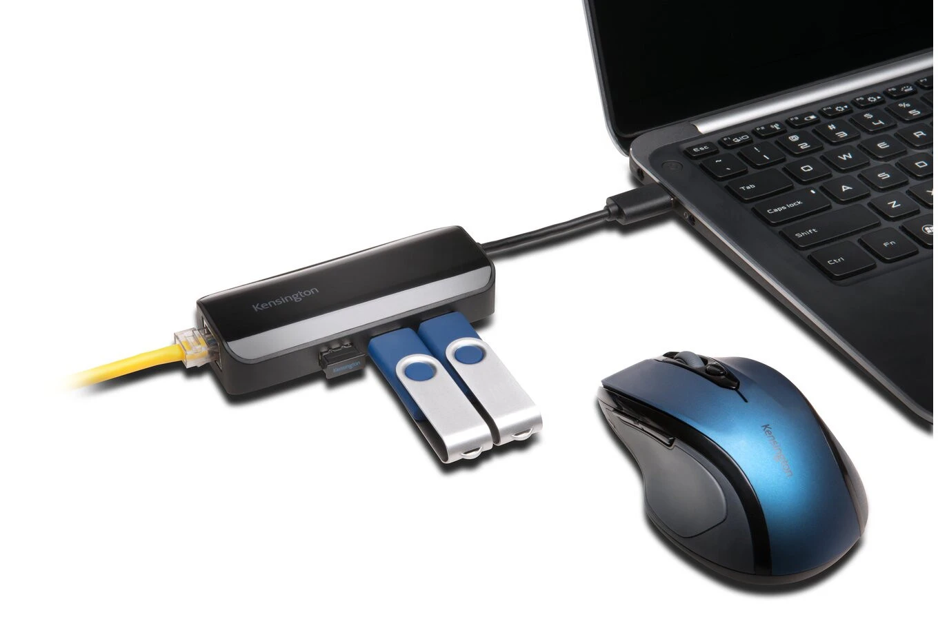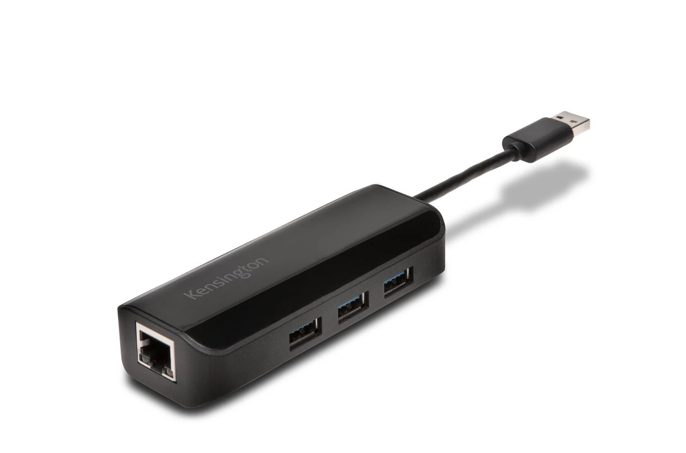 Kensington UA3000E Adattatore Ethernet E Hub A 3 Porte USB 3.0 – Nero