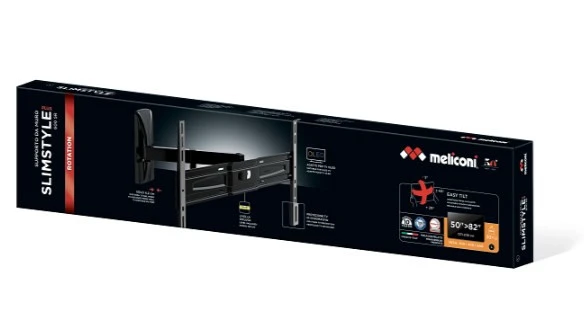 SLIMSTYLE PLUS è la nuova linea di supporti da muro ultrasottili per TV marchiata Meliconi S.p.A., connubio perfetto tra tecnologia all’avanguardia, materiali di ultima generazione e design accattivante. Grazie alle innovative funzioni EASY TILT e EASY TILT PRO, inclinare la tua TV non sarà mai stato così semplice e preciso. L’aggiunta di un rivestimento protettivo in gomma su tutti i supporti, proteggerà la tua TV nel tempo, senza rinunciare a un ridottissimo ingombro (fino a un minimo di 2 cm dal muro) e una totale sicurezza. Tutti i supporti SLIMSTYLE PLUS sono 100% Made in Italy, con qualità certificata TUV e 10 anni di garanzia. 600 SR è un supporto orientabile a uno snodo per TV con foratura VESA 300 – 400 – 600 mm, che consente di inclinare lo schermo verticalmente e orizzontalmente, adatto alle TV di grande formato. La funzione EASY TILT consente di cambiare l’inclinazione verticale del televisore in maniera libera, senza l’utilizzo di alcun cacciavite.