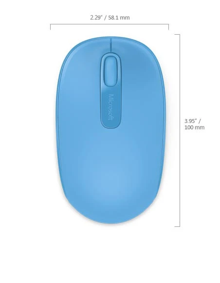 Microsoft 1850. Fattore di forma: Ambidestro. Tecnologia di rilevamento del movimento: Ottico, Interfaccia dispositivo: RF Wireless, Risoluzione movimento: 1000 DPI, Tipo di pulsanti: Tasti premuti, Numero di tasti: 3, Tipo di scorimmento: Rotella. Alimentazione: Batterie. Colore del prodotto: Ciano