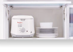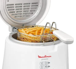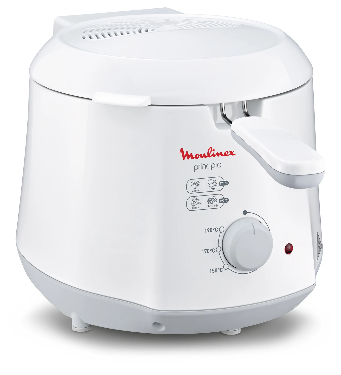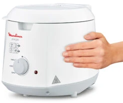 Moulinex MINICOMPACT. Tipo di prodotto: Friggitrice, Capacità friggitrice: 0,6 kg, Capacità olio: 1,2 L. Tipo di costruzione: Singolo, Colore del prodotto: Bianco, Grigio, Tipo di controllo: Manopola. Potenza: 1000 W. Larghezza: 282 mm, Profondità : 343 mm, Altezza: 256 mm
