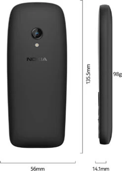 Nokia 6310. Fattore di forma: Barra. Capacità della scheda SIM: Doppia SIM. Dimensioni schermo: 7,11 cm (2.8″), Risoluzione del display: 320 x 240 Pixel. Risoluzione fotocamera posteriore (numerico): 0,3 MP. Wi-Fi. Bluetooth. Radio FM. Capacità della batteria: 1150 mAh, Autonomia in standby (2G): 520,8 h. Colore del prodotto: Nero