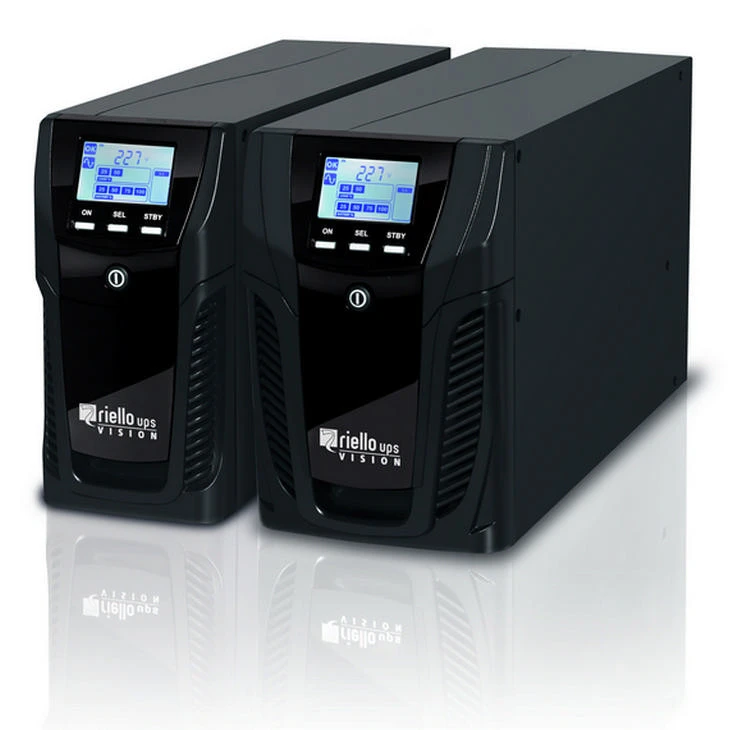 La serie Vision è disponibile nelle versioni Tower (VST), nei modelli da 800VA a 2000VA con tecnologia sinusoidale digitale. La serie Vision, per la connettività e la comunicazione evoluta, è la soluzione ideale per gli utenti più esigenti, che richiedono un’elevata protezione ed un’estrema versatilità del sistema di alimentazione. Vision è la migliore protezione per periferiche di rete, server convenzionali e sistemi backup di rete. Elevata protezione La serie Vision è una gamma di UPS con tecnologia Line Interactive e tensione di uscita sinusoidale. Tale tecnologia permette di ottenere un rendimento pari al 98% e quindi ridotto consumo energetico. Garantisce inoltre un elevato livello di protezione contro le perturbazioni presenti in rete. Il dispositivo di regolazione automatica AVR fornisce protezione da picchi, sovra e sottotensioni, senza intervento da batteria. Il minor utilizzo delle batterie significa che queste saranno disponibili al 100% in caso di intervento e si disporrà di maggiore autonomia. I filtri EMI provvedono ulteriormente alla protezione da picchi di tensione e transitori. In assenza di rete il carico sarà alimentato da inverter con onda perfettamente sinusoidale per la massima continuità ed affidabilità. Rielo UPS da sempre sensibile al risparmio energetico ha introdotto nella serie Vision il pulsante di spegnimento per ridurre a zero il consumo nei periodi di prolungata inattività (ECO LINE). Alta disponibilitá La presa energyshare consente la distribuzione del carico e lo spegnimento delle periferiche meno sensibili per prolungare l’autonomia dei carichi critici. Il pacco batteria “Hot Swap” estraibile dal pannello frontale per una facile e sicura manutenzione dell’UPS. Test batterie per verificare potenziali deterioramenti delle prestazioni delle batterie. Protezione di fine scarica per ridurre l’invecchiamento generale della batteria. Versatilitá Funzione “Cold start” che permette l’accensione dell’UPS in assenza della linea di alimentazione principale. Display LCD Vision è dotato di un display LCD retroilluminato che fornisce indicazioni sullo stato dell’UPS, del carico e sulle condizioni delle batterie. Comunicazione evoluta – Comunicazione evoluta, multipiattaforma, per tutti i sistemi operativi e ambienti di rete: software di supervisione e shut-down Powershield3 incluso, con agente SNMP, per sistemi operativi Windows 7, 2008, Vista, 2003, XP, Linux, Mac OS X, Sun Solaris, Linux, VMWare ESX e altri sistemi operativi Unix – interfaccia USB e RS232 (selezionabile) – Slot di espansione per schede interfaccia agente SNMP – stati, misure, allarmi e parametri di ingresso, uscita e batteria disponibili su display LCD.
