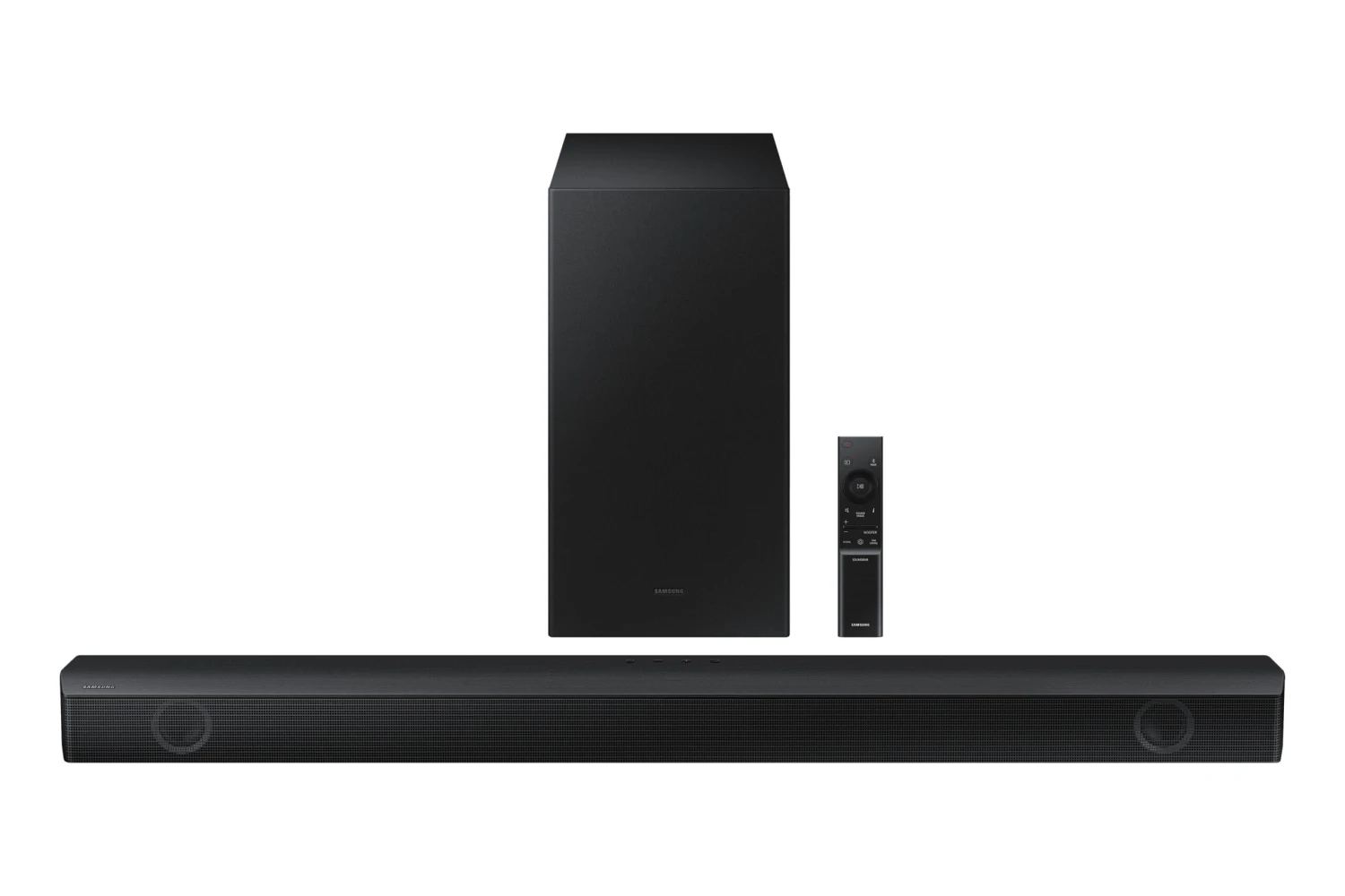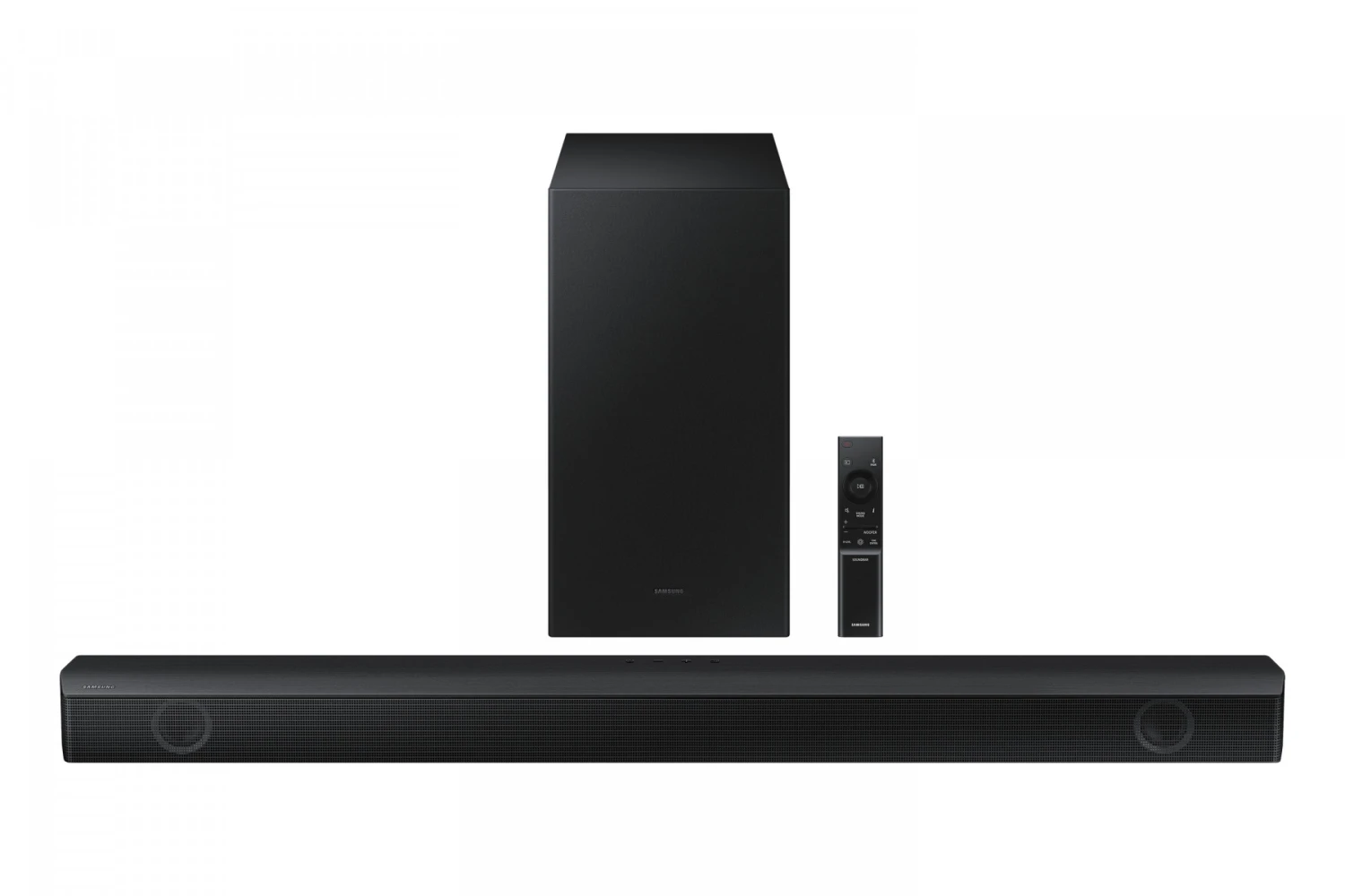 Samsung Soundbar Serie B HW-B550. Sistema audio: 2.1 canali, Potenza in uscita (RMS): 410 W. Connettività del subwoofer: Wireless, Potenza RMS subwoofer: 250 W, Posizione del subwoofer: Separato. Colore del prodotto: Nero, Formati audio supportati: AAC, AIFF, FLAC, MP3, OGG, WAV. Tecnologia di connessione: Con cavo e senza cavo, Codec Bluetooth: SBC, AAC. Consumo energetico del soundbar: 25 W, Consumo subwoofer: 45 W, Consumi (modalità stand-by): 0,5 W