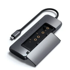 Satechi ST-UCHSEM. Tecnologia di connessione: Cablato, Interfaccia host: USB 3.2 Gen 2 (3.1 Gen 2) Type-A, Fornitura di alimentazione USB fino a: 100 W. Colore del prodotto: Grigio, Interfaccia Solid State Drive (SSD): SATA, Dimensioni SSD supportate: M.2. Larghezza: 45,7 mm, Profondità : 134,6 mm, Altezza: 15,2 mm. Quantità per pacco: 1 pz