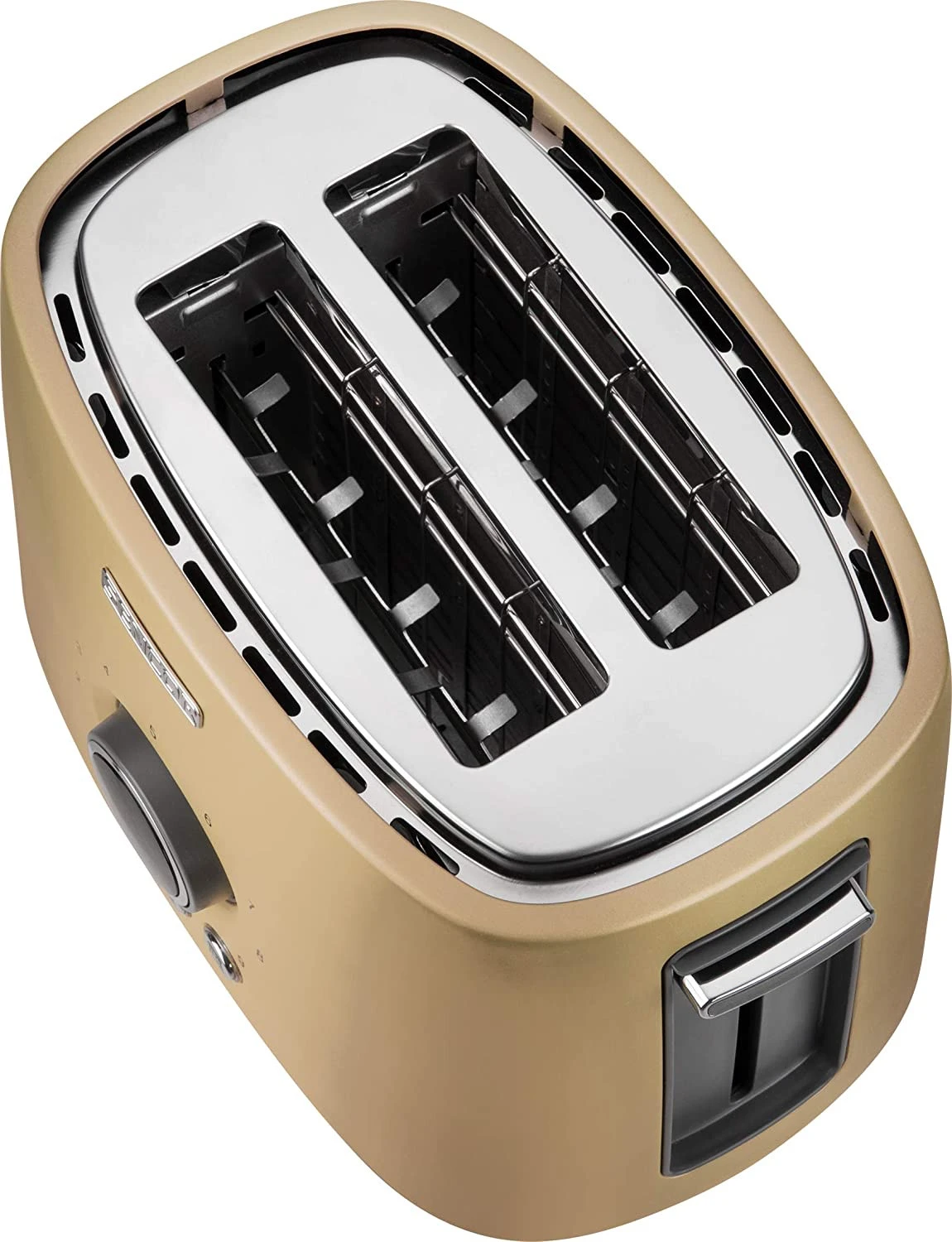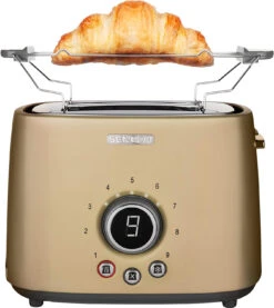 Tostapane elettrico. 2 slot per tostare fino a due fette (lunghezza 135 mm). Design in acciaio inossidabile di alta qualità . Griglia per riscaldare e farcire i panini. Tre funzioni in una: – riscaldamento (con indicatore luminoso) – cancellazione immediata delle operazioni prima della fine del tempo impostato – sbrinamento di prodotti surgelati (con indicatore luminoso) Adatto per realizzare toast sia spessi che sottili. Timer elettronico – 9 livelli di intensità di tostatura. Espulsione automatica del pane e spegnimento dopo il completamento della tostatura / sbrinamento. Funzione di centratura automatica per una tostatura uniforme di toast sia spessi che sottili. Funzione High-Lift di sollevamento per una facile rimozione dei pezzi di pane più piccoli. Facile da pulire (il vassoio raccogli-briciole si estrae con un solo tocco). Piedini antiscivolo. Spazio per alloggiare il del cavo di alimentazione.