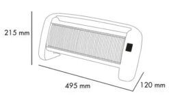 Argoclima Betsy. Tipo: Riscaldatore di ambienti elettrico al quarzo, Tipologia elemento riscaldante: Vetro di quarzo, Certificazione: CE. Adatto per: Interno, Opzioni di posizionamento: Pavimento, Colore del prodotto: Bianco. Potenza termica: 1200 W, Potenza termica (min): 600 W, Adatto per stanze fino a: 40 m³. Tensione di ingresso AC: 230 V, Frequenza di ingresso AC: 50 – 60 Hz. Larghezza: 495 mm, Profondità : 120 mm, Altezza: 215 mm