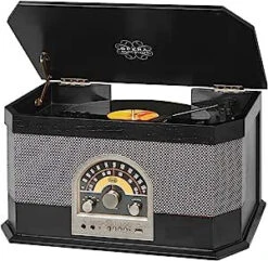 Il suono caldo e pieno di matrice analogica della rotazione in vinile sulle classiche tre velocità , 33 / 45/ 78 giri al minuto, viene risaltato dall’estetica vintage anni ’60 in una struttura lignea con coperchio richiudibile. Gli altoparlanti stereo garantiscono una buona fedeltà complessiva anche nell’ascolto di tracce in digitale da MP3.