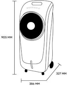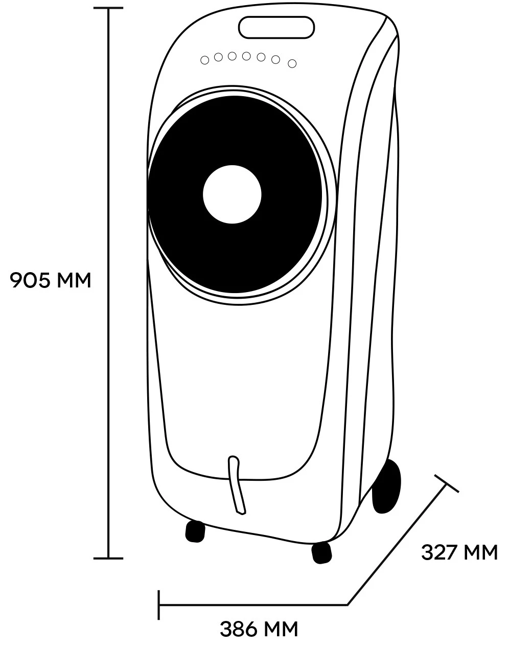 Argoclima Polifemo Ion Silver. Tipo: Raffrescatore evaporativo, Colore del prodotto: Nero, Grigio, Numero di ruote: 4 ruota(e). Capacità tanica acqua: 7 L, Tecnologia di raffreddamento del supporto: A nido d’ape, Durata timer: 1 h. Tipologia alimentazione: AC, Carico di collegamento: 90 W, Tensione di ingresso AC: 220 – 240 V. Larghezza: 386 mm, Profondità : 327 mm, Altezza: 905 mm. Tipo di imballo: Scatola